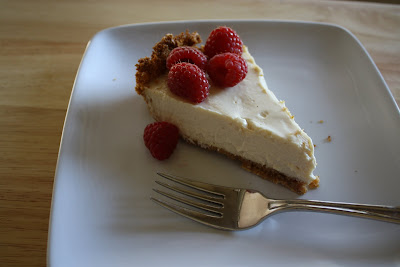So I finally got to make this recipe. It calls for a premade vegan crust, but I used a recipe I already had for a graham cracker crust, which I think is great with cheesecake. Keep in mind that graham crackers usually contain honey, so they are not vegan. You can make your own, though, and you can even make them gluten-free. Of course, you could use the crust of your choice. I used a 9-inch pie plate, but a springform pan would have been more appropriate (a tart pan might be too shallow).