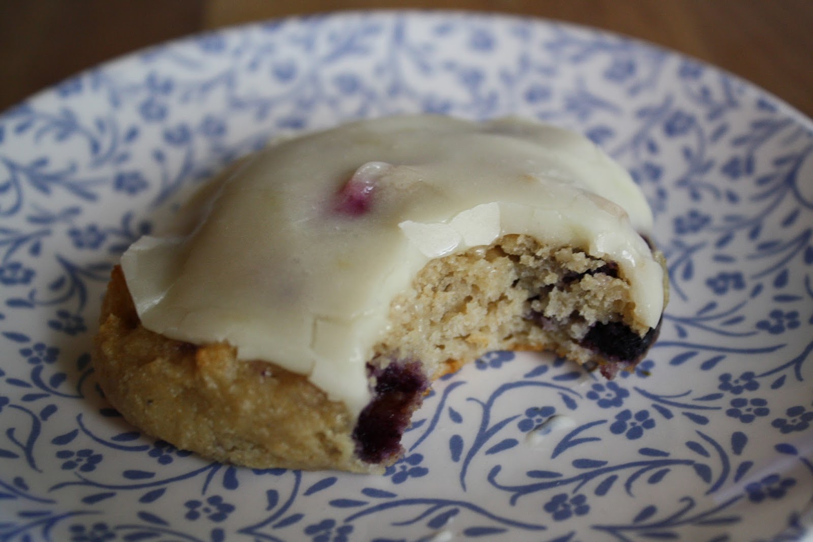 I was trying to use up some frozen blueberries at one point and decided to make these soft blueberry yogurt cookies with lemon cream cheese glaze. (Well, I made blueberry breakfast bars first, but those didn’t turn out right. The dough was too crumbly and didn’t hold together, so I’m not posting about them.)