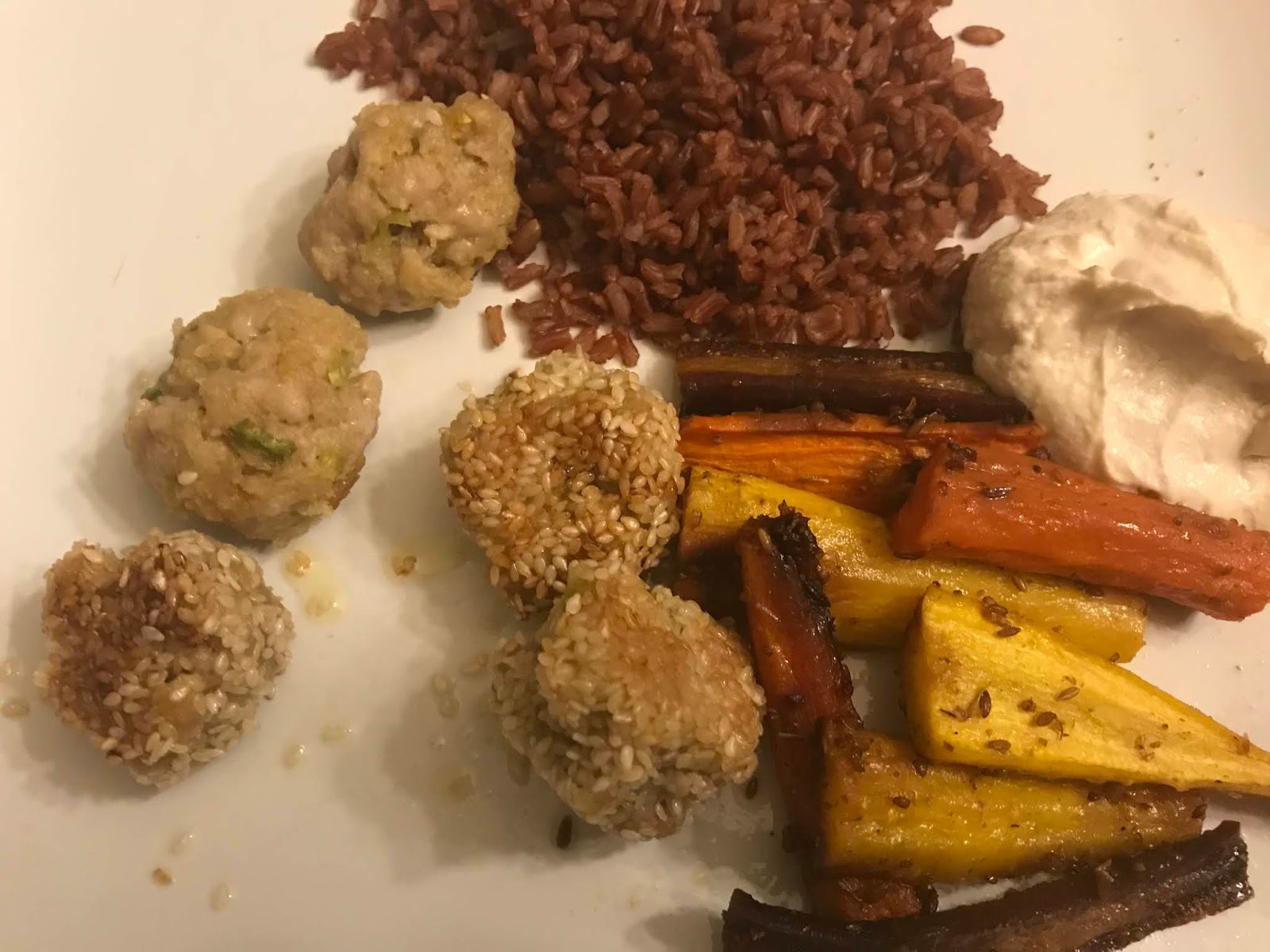 J’ai doublé la recette, donc, mais j’ai gardé la même quantité de graines de sésame, alors la moitié de mes boulettes étaient « nues » et elles étaient délicieuses aussi! Vous pouvez donc omettre les graines de sésame si vous voulez, ou utiliser un mélange de graines noires et blanches. J’ai dû utiliser de la pâte de cari verte, car je suis allée à deux épiceries sans trouver de pâte de cari jaune. On a vraiment adoré le résultat! Tout le monde en a redemandé.